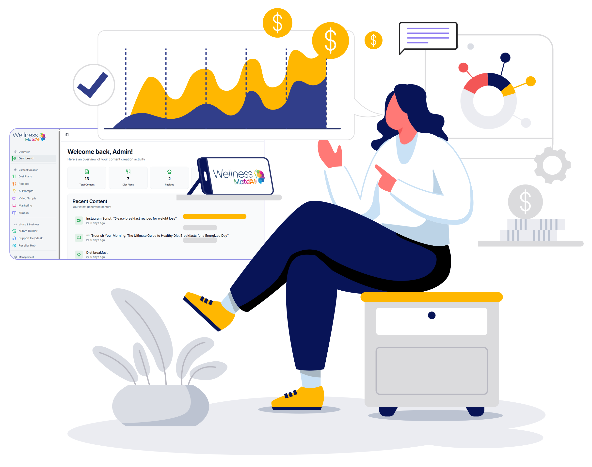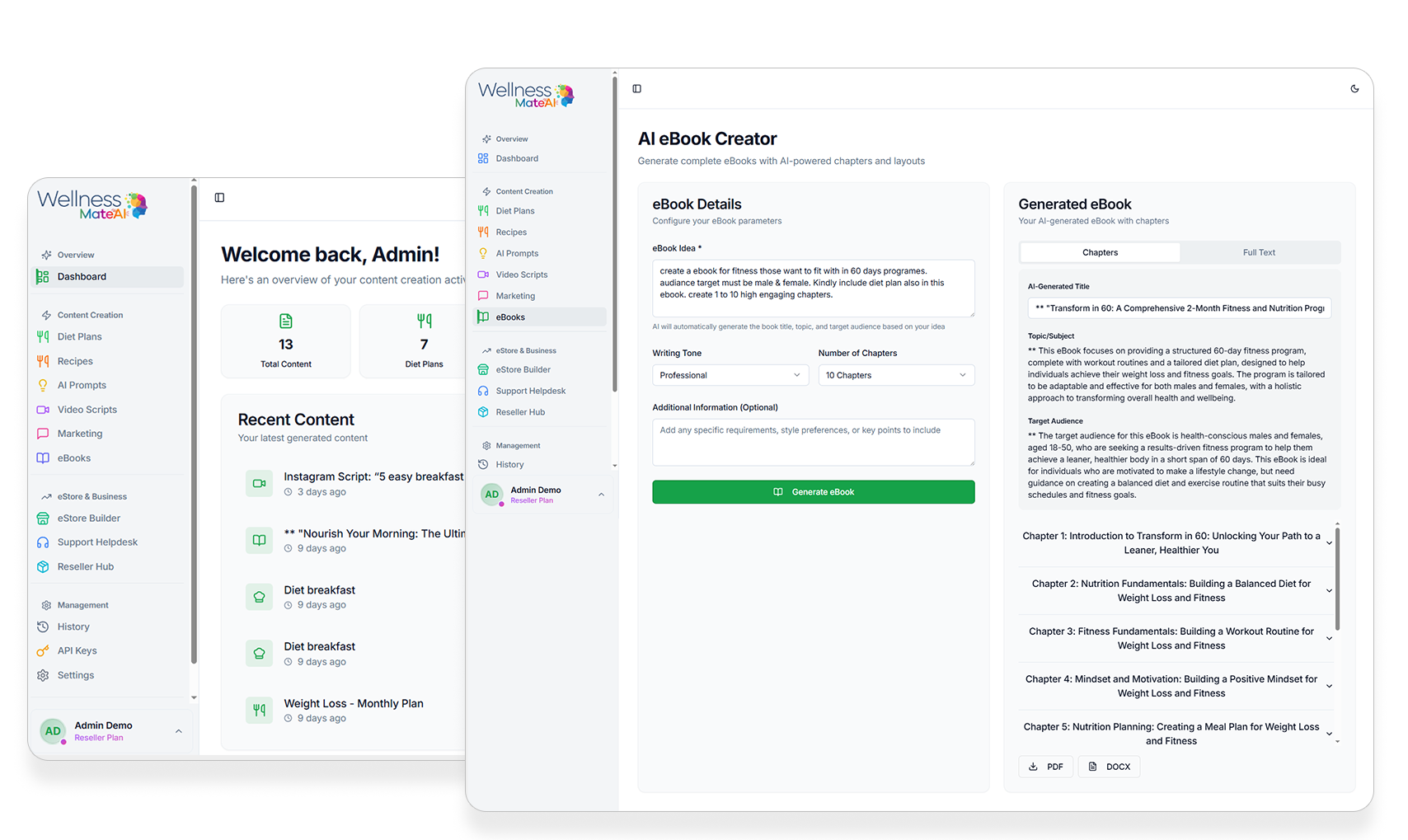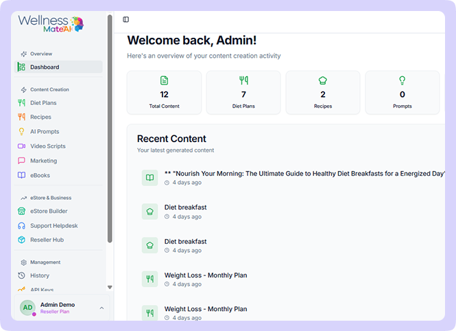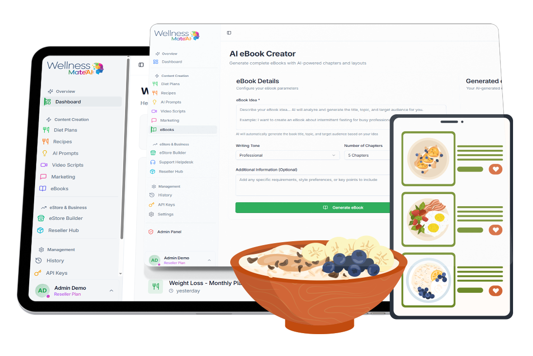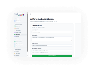 mindset modules, or recipe books - WellnessMateAI helps you create premium, expert-level content in