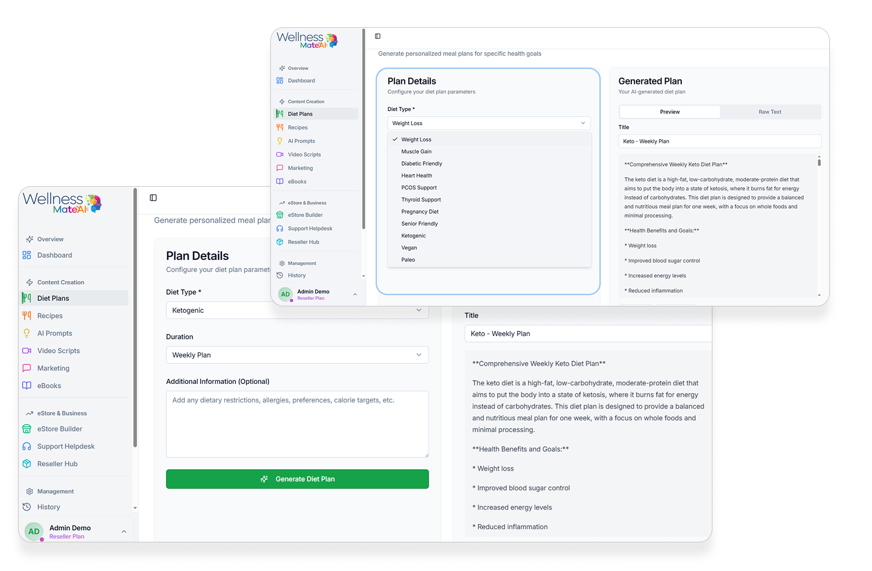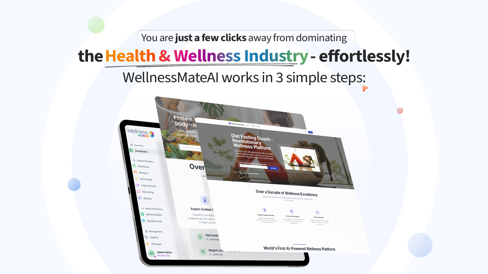 With WellnessMateAI, you can step into this booming space instantly. Create beautiful, expert-level health